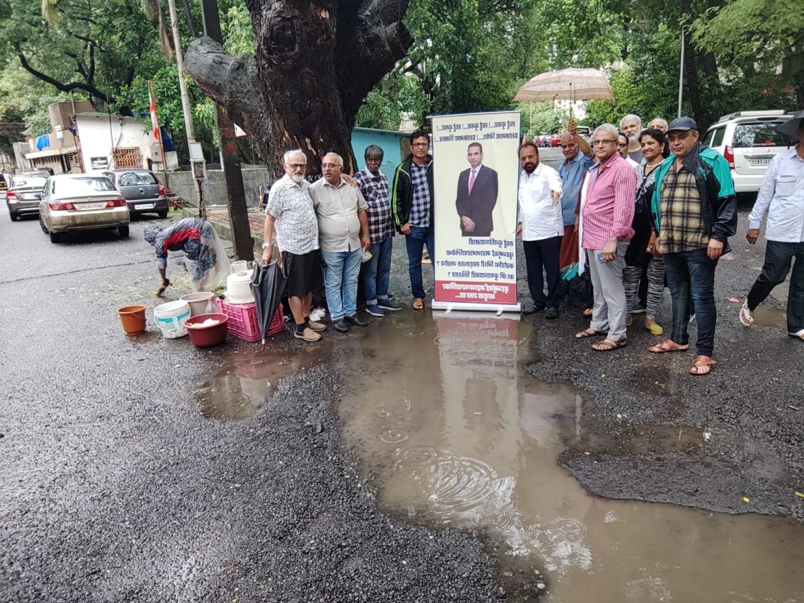 मुंबई: महानगरपालिका ने पिछले तीन महीनों में 8,000 गड्ढे भरने का दावा किया है।पिछले साल इसी अवधि में दस हजार गड्ढे भरे गए थे। लेकिन स्थिति यह है कि मुंबई और उपनगरों में गड्ढों का साम्राज्य बन गया है. उधर नगर पालिका प्रशासन ने प्रत्येक वार्ड को गड्ढों को भरने के लिए नगर पालिका द्वारा 2 करोड़ रुपये की राशि दी जा रही है। इसके बावजूद सड़कों पर कई जगह गड्ढे हो गए हैं, .बुधवार को मनपा प्रशासन का ध्यान खींचने के लिए भारतीय जनता पार्टी की ओर से नगरसेवक प्रकाश गंगाधरे और भाजपा पदाधिकारियों ने अनोखा आंदोलन किया। भाजपा ने मुलुंड के नाहूर जंक्शन क्षेत्र में एक गड्ढा जुलूस निकाला और नगर आयुक्त चहल की तस्वीर के साथ एक सेल्फी ली । उन्होंने कहा कि मुंबई नगर निगम का दावा है कि सड़कों पर ज्यादा गड्ढे नहीं हैं, लेकिन हकीकत में तस्वीर कुछ और है. मनपा प्रशासन इन गड्ढों के माध्यम से नागरिकों के जीवन से खेल रहा है। इसकी जांच होनी चाहिए और इसके लिए मुंबई नगर निगम को भ्रष्टाचार से मुक्त करने की जरूरत है। यह प्रतिक्रिया नगरसेवक प्रकाश गंगाधरे ने दी. । इस आंदोलन के दौरान जयश्री बालेकर के साथ बीजेपी के राजेंद्र मोहिते सनिका चव्हाण।।इस आंदोलन में भाजपाके राजेंद्र मोहिते, सानिका चव्हाण, जयश्री बलेकरसहित मन मंदिर सोसायटीके पदाधिकारी भी उपस्थित थे.