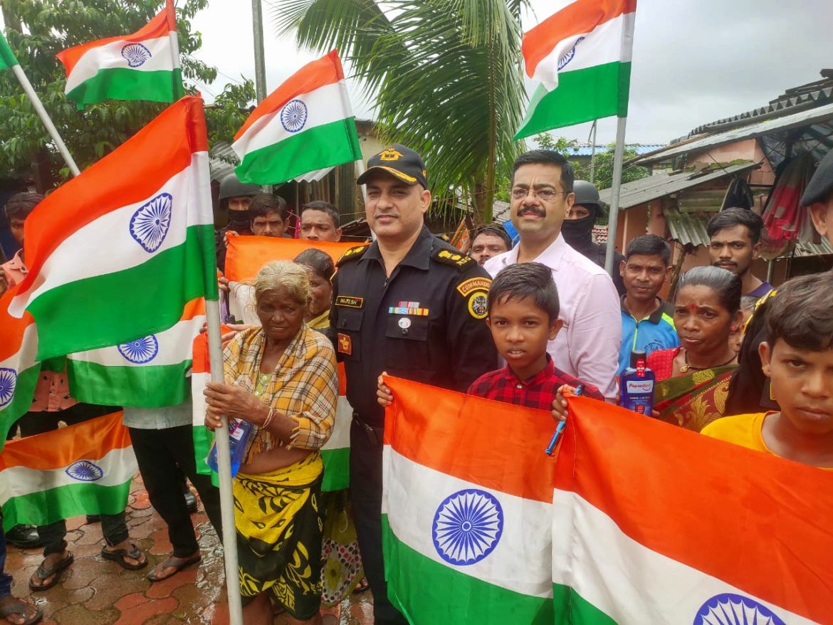 हर घर तिरंगा मुहिम से जुड़ते हुए 26 एससीजी, एनएसजी मुंबई ने नई मुंबई के बेलापुर सहित अनेक आदिवासी इलाकों और वहां के स्कूलों में जाकर तिरंगा झंडा, चॉकलेट, मिठाई व पोषक भोजन (स्नैक्स) बेलापुर के आदिवासी ग्रामीणों और आदिवासी स्कूलों के छात्रों में वितरित किया .