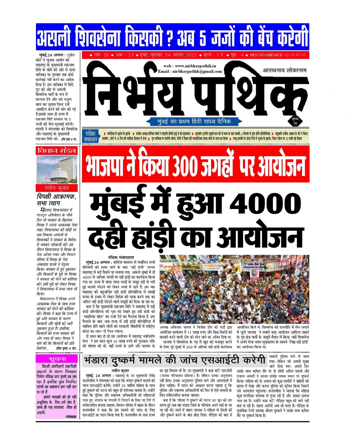 ईपेपर आज का निर्भय पथिक by zadmin August 24, 2022 written by zadmin August 24, 2022 620 0 comments 0 FacebookTwitterPinterestLinkedinTumblrRedditWhatsappTelegramLINEEmail zadmin previous post टमाटर फ्लू का बच्चों में बढ़ रहा प्रकोप next post खरी-खरी:अशोक वशिष्ठ You may also like आज का निर्भय पथिक May 16, 2025 Leave a Comment Cancel Reply Save my name, email, and website in this browser for the next time I comment.