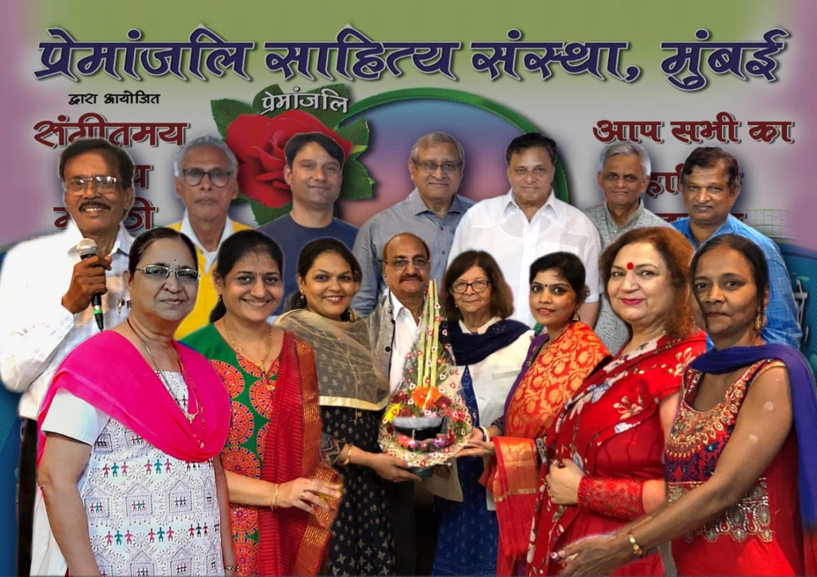 *ठाणे- प्रेमांजलि साहित्य संस्था द्वारा आयोजित भव्य संगीतमय काव्य गोष्ठी का आयोजन रेणु सुुशील सक्सेना के यहाँ वृंदावन सोसाइटी ठाणे (प.) में किया गया। इसकी अध्यक्षता एन. बी. सिंह ‘नादान’ (वरिष्ठ ग़ज़लकार) एवं मुख्य अतिथि मंजू गुलराजानी की उपस्थिति में हुआ। मधुर गायिका रेणु सक्सेना के संचालन ने कार्यक्रम में चार चाँद लगा दिया। कवि कवयित्री, गायक, गायिका, गीतकार, संगीतकार, ग़ज़लकारों ने अपनी अप्रतिम गीतों और रचनाओं से खुशी का माहौल बनाकर सभी का मन मोह लिया।*