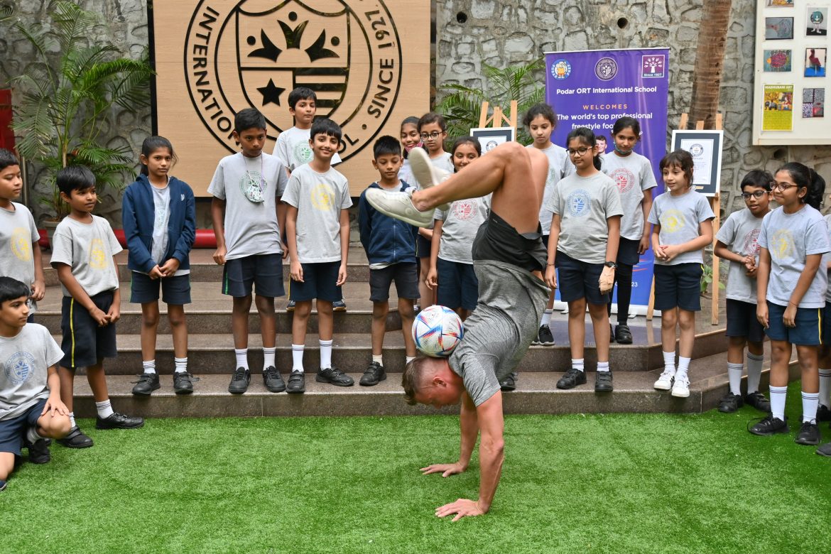 मुंबई: पोदार इंटरनेशनल स्कूल के विद्यार्थियों ने दुनिया के टॉप 10 फुटबॉल फ्रीस्टाइलर्स में से एक और कई गिनीज वर्ल्ड रिकॉर्डधारी  जैमी नाइट का जोरदार स्वागत किया.वह पहली बार मुंबई के दौरे पर आये हैं. जैमी दुनिया के सबसे अनुभवी और सबसे ज्यादा मांग में रहने वाले पेशेवर फुटबॉल फ्रीस्टाइलर्स में से एक हैं। वह पोदार एज्‍युकेशन नेटवर्क की पहल के तहत भारत का दौरा कर रहे हैं।