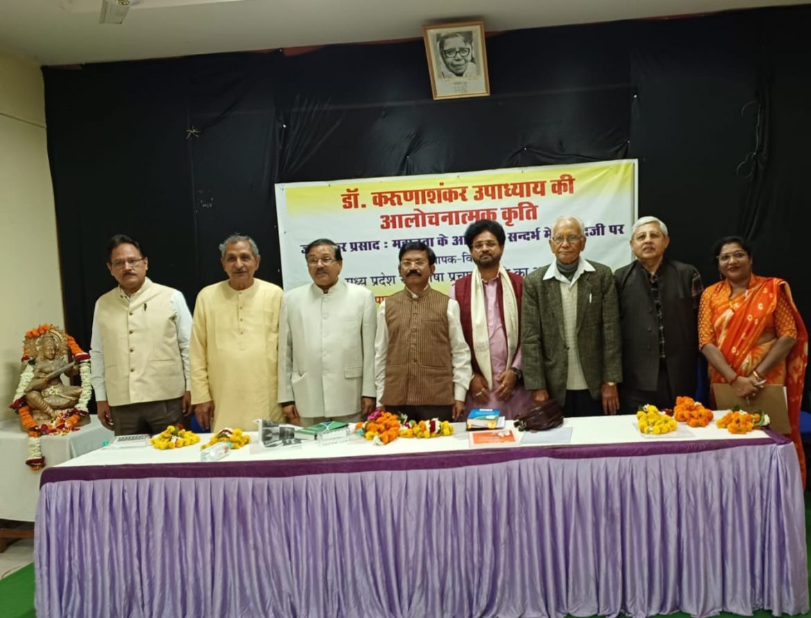 भोपाल: प्रोफेसर करुणाशंकर उपाध्याय ने जयशंकर प्रसाद जैसे बड़े रचनाकार के साथ न्याय किया है। प्रसाद जी के अलग-अलग पक्षों पर तो अनेक विद्वानों ने लिखा है लेकिन करुणाशंकर उपाध्याय ने उनके संपूर्ण साहित्य का भारत बोध और अस्मिता बोध के संदर्भ में नए सिरे से मूल्यांकन किया है।यह विचार पिछले दिनों हिंदी भवन भोपाल में आयोजित प्रख्यात आलोचक करुणाशंकर उपाध्याय के आलोचना ग्रंथ जयशंकर प्रसाद महानता के आयाम पर एक दिवसीय राष्ट्रीय संगोष्ठी में मध्य प्रदेश राष्ट्रभाषा प्रचार समिति के महामंत्री डॉ.कैलाश चंद पंत ने व्यक्त किया। उन्होंने कहा कि प्रसाद जी के अलग-अलग पक्षों पर तो अनेक विद्वानों ने लिखा है लेकिन करुणाशंकर उपाध्याय ने उनके संपूर्ण साहित्य का भारत बोध और अस्मिता बोध के संदर्भ में नए सिरे से मूल्यांकन किया है। इस अवसर पर प्रो.आनंद प्रकाश त्रिपाठी ने जयशंकर प्रसाद महानता के आयाम ग्रंथ की विस्तृत समीक्षा करते हुए कहा कि यह ग्रंथ प्रसाद की आलोचना परंपरा का मानदंड ही नहीं है अपितु वर्तमान पीढ़ी के आलोचकों एवं शोधार्थियों के लिए एक मार्गदर्शक ग्रंथ है। । यह आलोचना ग्रंथ प्रसाद साहित्य के साथ हमेशा पढ़ा जाएगा। प्रोफेसर उपाध्याय ने आचार्य रामचंद्र शुक्ल की तरह सूत्र- वाक्यों में बड़े गहन एवं संश्लिष्ट अर्थ भर दिए हैं जिसकी व्याख्या हजारों पृष्ठों में ही हो सकती है।इसी क्रम में दूसरे वक्ता डॉ.सुधीर शर्मा ने इसे प्रसाद साहित्य की तलस्पर्शी व्याख्या करने वाला ग्रंथ बताया।कवि आनंद सिंह ने कहा कि यह ग्रंथ प्रोफेसर उपाध्याय के प्रदीर्घ साधना का प्रतिफल है। आपने डाॅ.रामविलास शर्मा की पुस्तक निराला की साहित्य साधना से तुलना करते हुए कहा कि यदि जयशंकर प्रसाद महानता के आयाम के स्थान पर प्रसाद की साहित्य साधना शीर्षक रख दिया जाए तो भी कोई अंतर नहीं आएगा। इसमें डॉ.उपाध्याय ने पहली बार प्रसाद के दार्शनिक, आलोचनात्मक चिंतन के साथ- साथ उनके वैज्ञानिक चिंतन का भी गहन विश्लेषण किया है।