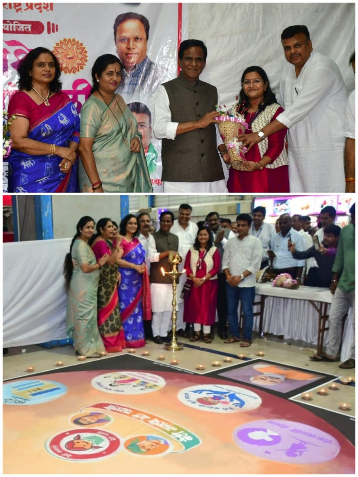 मुंबई,@nirbhaypathik:भारतीय जनता पार्टी,ने बेटी बचाओ बेटी पढाओ ,संकल्पना को ध्यान मे रखकर ,दीपावली के शुभ अवसर पर हर घर रंगोली प्रतियोगिता घोषित की है। बुधवार को मुंबई के चर्चगेट स्टेशन पर प्रतियोगिता का औपचारिक शुभारंभ केंद्रीय रेल राज्यमंत्री रावसाहेब दानवे पाटील के हाथों संपन्न हुआ। बेटी बचाओ बेटी पढाओ महाराष्ट्र प्रदेश संयोजक डा. शुभा पाध्ये और मुंबई संयोजक प्रा. आरती पुगावकर, तथा मुंबई भाजपा महामंत्री संजय उपाध्याय ने मंत्री महोदय का स्वागत किया। शैलेश घेडिया, विनय त्रिपाठी, जनक संघवी के साथ अन्य पदाधिकारियो ने कार्यक्रम सफल करने हेतू परिश्रम किया । यातायात करने वाले सभी प्रवासीगण रंगोली की तारीफ कर, फोटो भी खींच रहे थे। आरती पुगावकर ने सभी को मिठाई खिलाकर धन्यवाद दियाऔर दीपावली की शुभकामनाए दी।